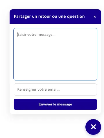 Ce widget permet aux visiteurs de votre service d’envoyer des questions ou des retours à votre équipe.